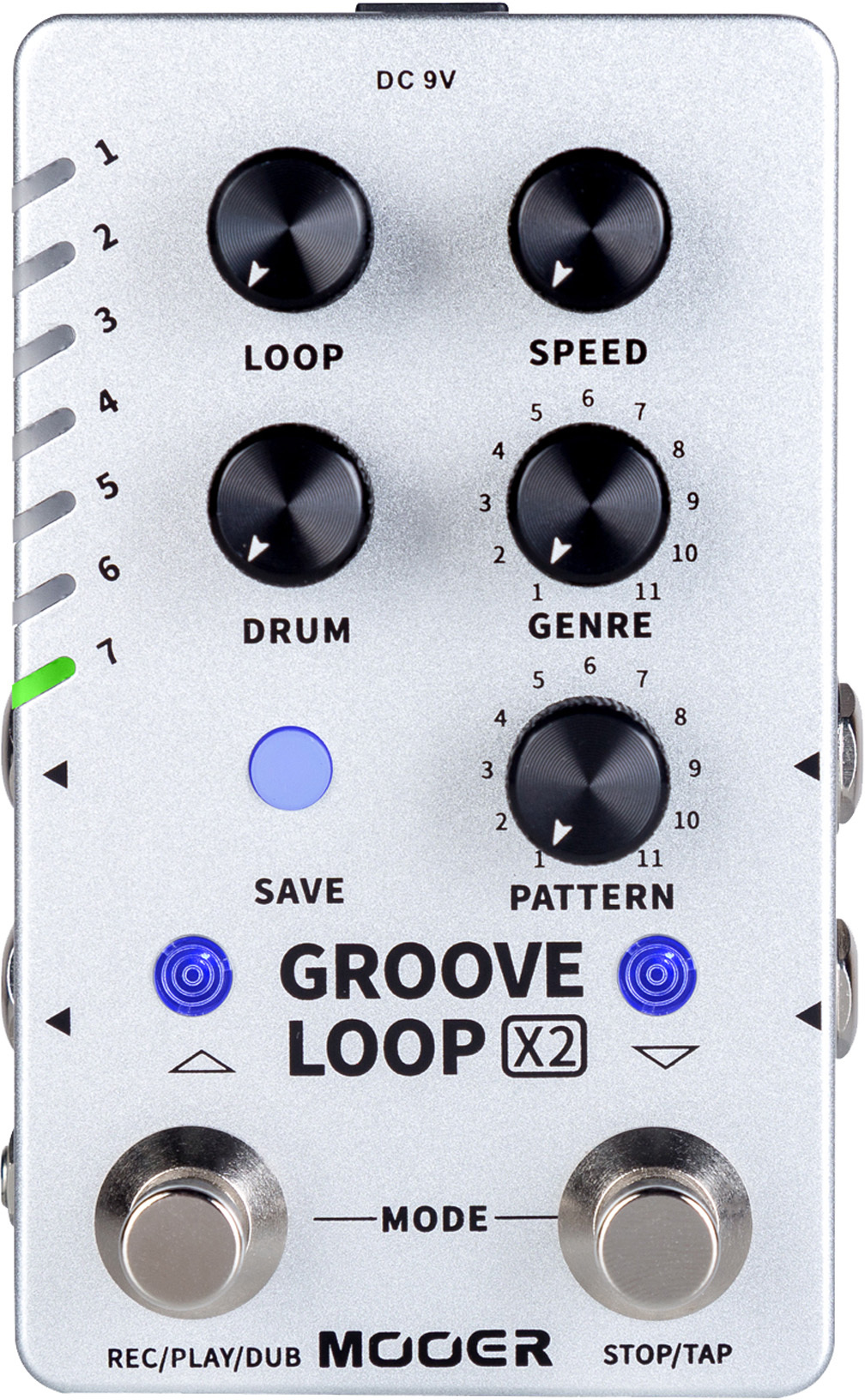 O Groove Loop X2 tem como objetivo servir como o pedal combinado de looper e drum machine definitivo, tanto na sala de ensaio quanto no palco. O looper X2 apresenta impressionantes 14 slots de salvamento que podem armazenar loops de até 10 minutos em cada slot. Os controles do looper são familiares e flexíveis, com a capacidade de alternar o modo de contagem regressiva ligado/desligado e um modo automático que detecta e começa o looper assim que um sinal de instrumento é detectado. A funcionalidade Time Stretch também está incluída para permitir que os usuários alterem a velocidade de reprodução sem afetar o tom original.