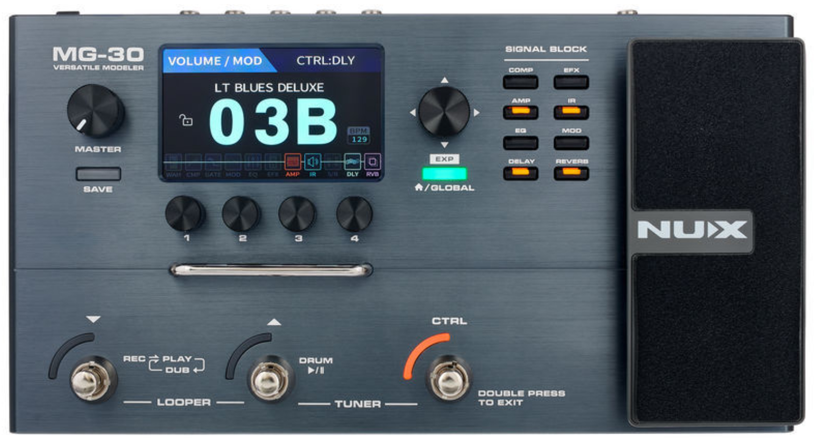 A Nux MG 30 conta com 30 clássicos essenciais, alcançando os padrões dos músicos mais exigentes. Estão inclusos nessa seleção 25 modelos de amplificadores de guitarra, 3 modelos de amplificadores de baixo e 2 modelos de amplificadores acústicos.
