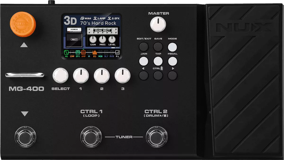 Pedaleira multiefeitos MG-400 para guitarra e baixo. Abriga dois poderosos chips DSP para algoritmo de emulação de amplificador White-Box de alta definição (TSAC-HD) e pós-efeitos Core-Image. Conta com 10 blocos de efeitos flexíveis e independentes, 12 slots IR COLLECTION, display intuitivo e software Quick Tone Edit para edições rápidas.